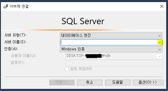 SQL서버 설치후 SSMS에 처음 접속하면 아래의 화면이 뜬다.