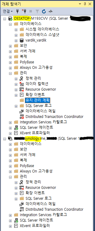 (두개의 차이점은 유지 관리 계획 이라는 폴더가 없다는 것.)