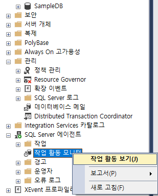 작업 활동모니터에서 우클릭후 작업 활동보기를 클릭한다.