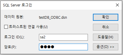 만들어 놓은 ODBC 파일을 클릭하고 확인