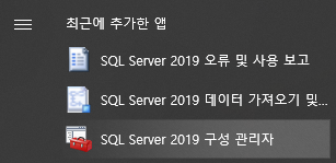 윈도우에서 SQL server 2019 구성관리자를 찾아 실행합니다.