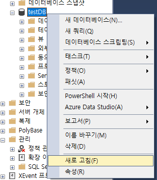 DB이름에 우클릭해서 새로고침을 한번 해줍시다(습관적으로 해줍시다)