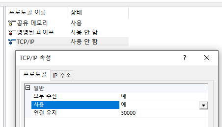 - SQL EXPRESS에 대한 프로토콜 클릭