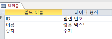 예시를 위해서 간단한 테이블을 만들겠습니다. 필드 형식은 위와 같고 데이터 내용은 아래와 같습니다.