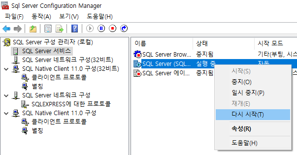- SQL Server 서비스 클릭