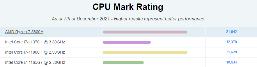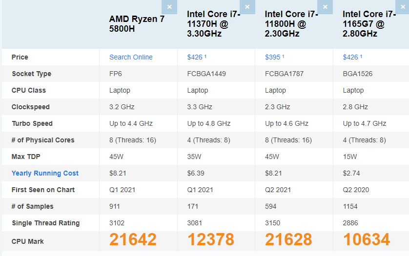 하이엔드급으로 맞추는 분들은 이 위로 맞추고, 예산에서 조금 밀린다 싶으면 이걸 기준으로 하나 아래로 내려서 맞추는게 오래도록 좋은 성능을 유지하는 노트북을 소유하지 않을까 싶다. 그런데 왜 구지 더 좋은 cpu가 있는데 5800H에 열광할까? 당연히 그 이상 투자하는 돈에 비해서 퍼포먼스 레이트가 떨어지기 때문이다. 인텔 i7의 매니아인 나도 이번에 벤치마크를 통해서 한번 외도를 할 수 있지 않을까 싶었다. AMD의 주가를 뛰게 만든 장본인인 5800h를 한 번 살펴 보겠다.