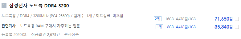 - 대상 (CPU) : intel의 경우 i7을 조건으로 검색, 현재 노트북에서 사용되는 것들입니다.
