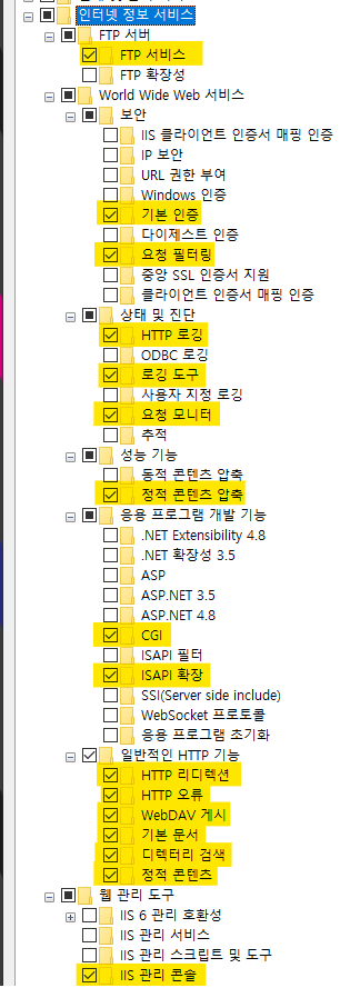 루트에서 아래로 스크롤을 내리면 인터넷 정보 서비스라는게 있습니다.