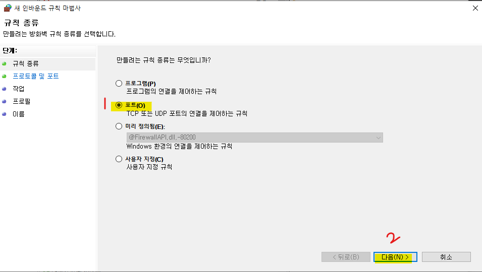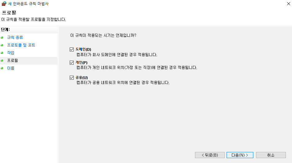 고급 보안이 포함된 windows defender 방화벽 창이 열린다.