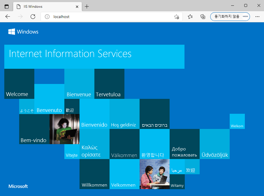 이런 창이 열리면 iis가 80포트를 통해서 정상구동 된다는걸 확인 할수 있다. 브라우저에 localhost라고 치면 아래의 창이 나온다.