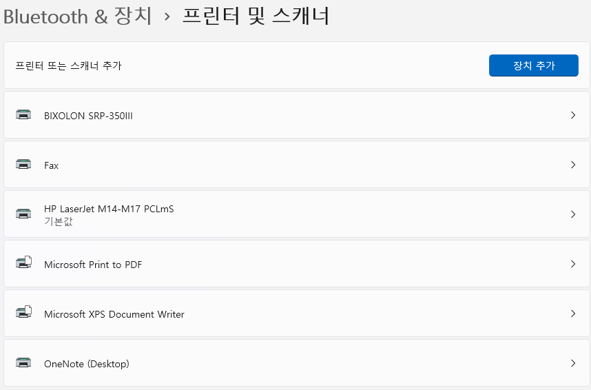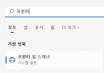 검색창 검색해서 프린터 및 스캐너로 들어가면, 아래와 같이 나오는데 이름을 그대로 쳐주면 됩니다.