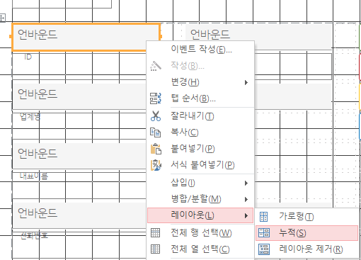 레이아웃 만들기는 오브젝트 우클릭 > 레이아웃 > 누적 으로 생성해주시고