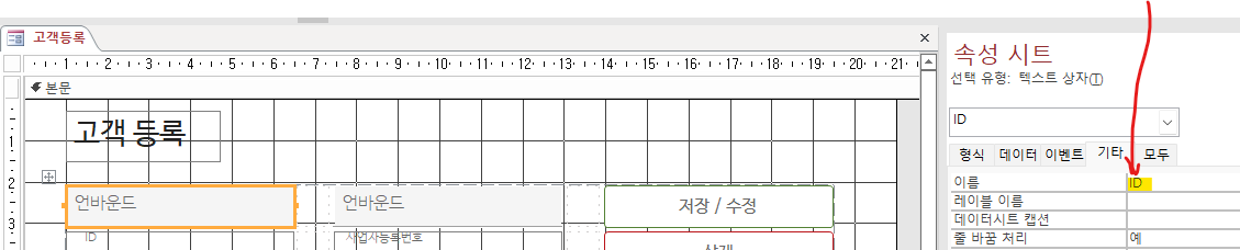 선택한 텍스트 박스는 ID가 나오는 곳이기 때문에, 이름을 ID라고 바꿔주겠습니다.