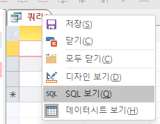 *잠시 디자인 보기, 데이터시트보기, SQL보기도 같이 진행하겠습니다.