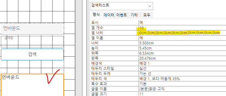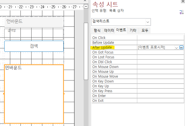 이제 검색리스트_AfterUpdate() 코드를 변경하겠습니다.