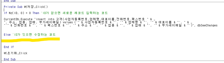 If Nz(ID, 0) = 0 Then 'ID가 없으면 새로운 레코드 입력하는 코드
