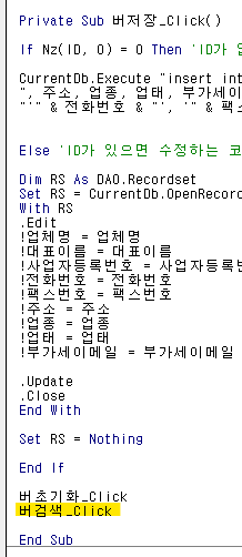 사업자등록번호 = 검색리스트.Column(3)