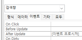 검색리스트.RowSource = "SELECT * FROM 고객 WHERE 업체명 Like '*" & 검색창 & "*'"