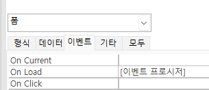 - 먼저 살펴볼 부분은 폼이 열릴때 최초 커서가 어디에 위치하는지