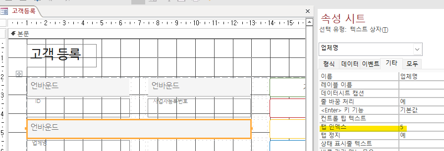 핑크 화살표대로 번호를 증가시키겠습니다. 사업자등록번호의 탭 인덱스는 6이됩니다.