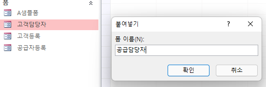 4. 폼이름 고객담당자 -> 공급담당자 로 변경 (1개)