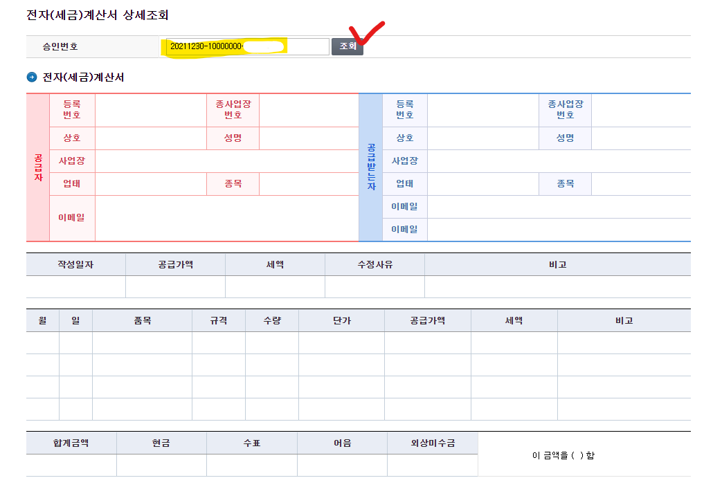 1. 매입 세금계산서 승인번호로 조회하기