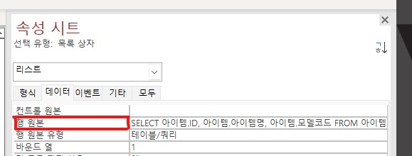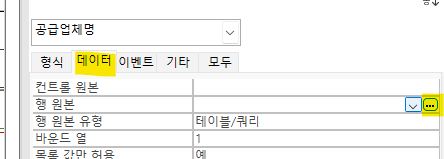 리스트.RowSource = "select * from 아이템 where 공급자ID = " & 공급업체명 & ""