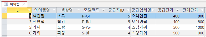 폼을 만들기에 앞서 공급주문에 사용할 테이블의 데이터 정리를 해주겠습니다.