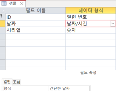 - 날짜: 날짜/시간, 간단한 날짜