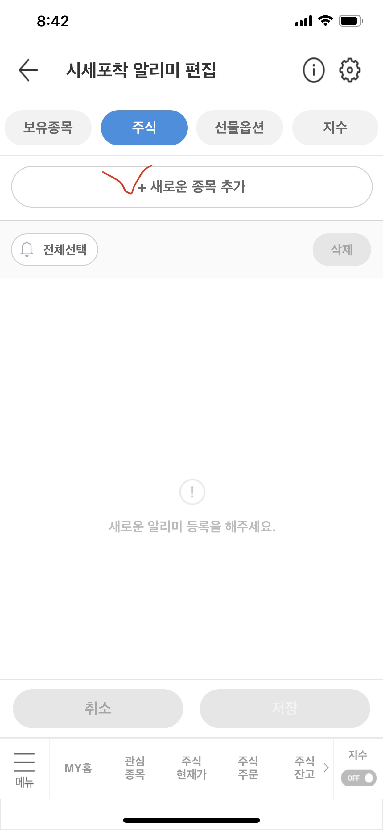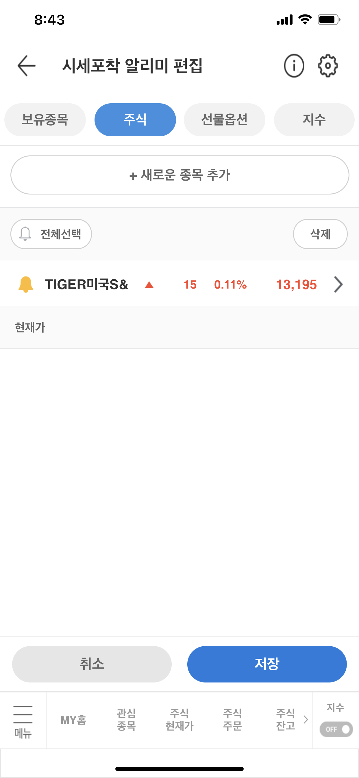 현재가 알림 > 원하는 가격 적고 > 저장
