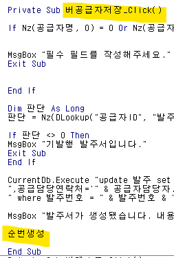 마지막순번 = Nz(DMax("순번", "발주상세", "발주번호 = " & 발주번호 & ""), 0) + 1