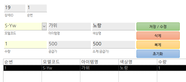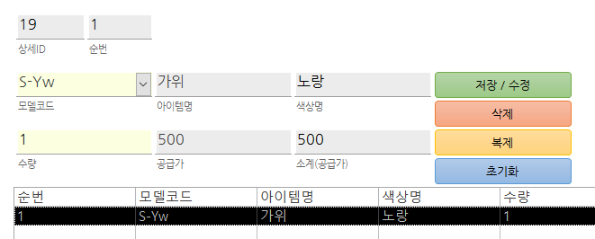[이전 글]: 바코2://#30. 아이템, 재고 관련 (9) 공급주문 폼 - 폼 구성