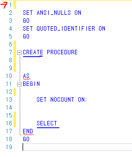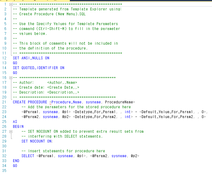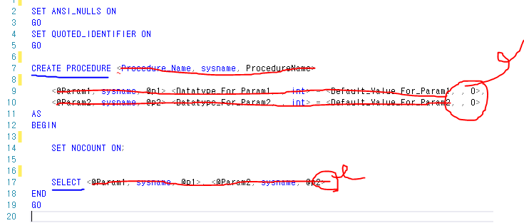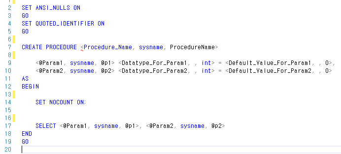 4) 이제 저장 프로시져의 뼈대만 남았습니다.