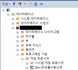 그 뒤에 트리뷰 + 버튼을 여시면 내가 지정했던 이름으로 프로시저가 저장된것을 볼 수 있습니다.