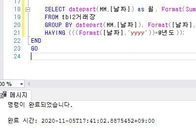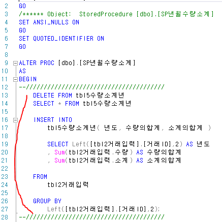 2) 이 프로시저를 수정하고 싶다면, 코딩을 수정하시고, 위에서 보셨던 실행 버튼을 누르시면 수정이됩니다.