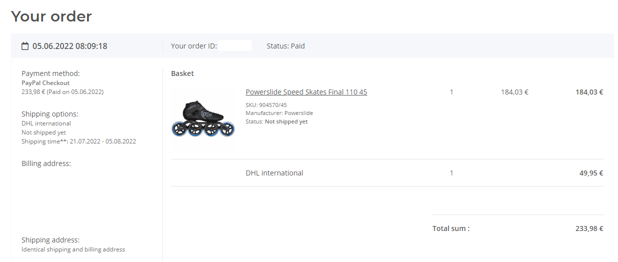 배송비 포함 234유로 한국돈 약 32만원