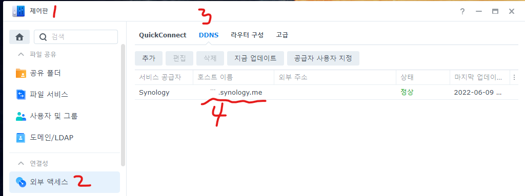 A19. 시놀로지의 DNS설정(4)이 되어 있는지 확인해주시고,