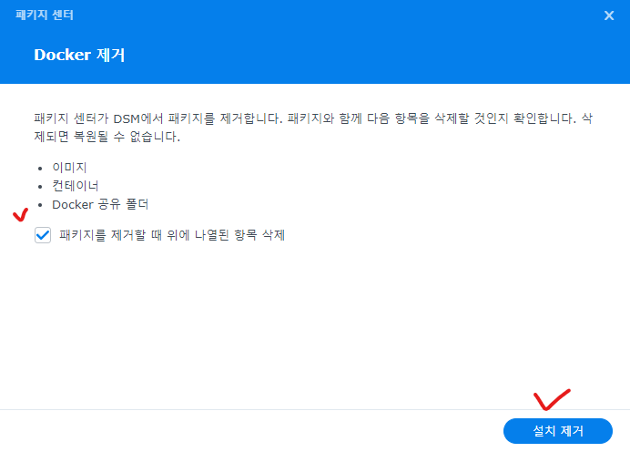 A7.실행 중인 컨테이너가 없는지 확인을 꼭 하시기 바랍니다.