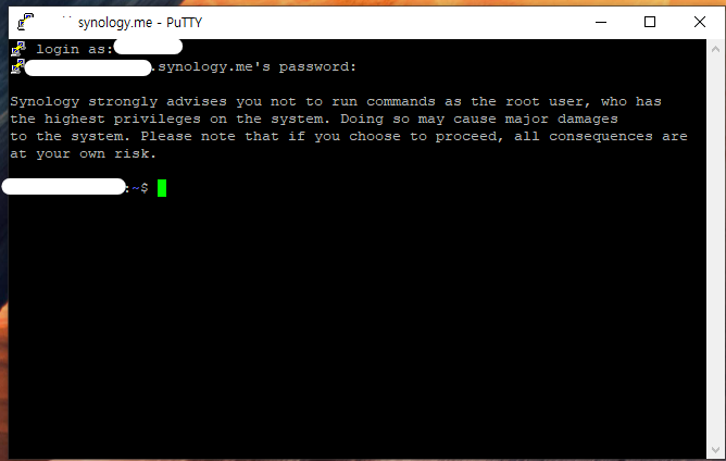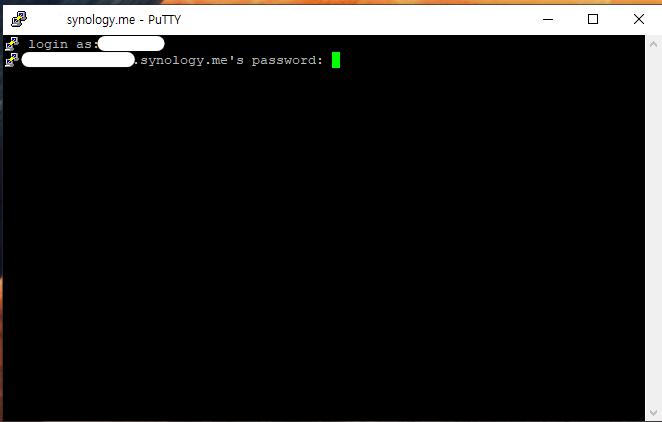 A21. 푸티를 실행시키면 아래와 같은 창이 뜹니다. 초록 네모상자가 보이면 시놀로지 ID를 입력해주세요.