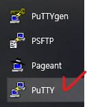 A16. 윈도우 시작 버튼(윈도우 왼쪽하단 구석의 버튼) 을 누르고 설치된 앱을 보면 4가지의 앱이 깔려 있는데 V체크한 putty 를 실행시킵니다.