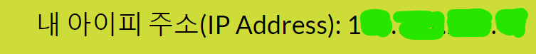 아래 그림의 초록색으로 가려진 IP를 확인해주세요. 192.168.219.xxx 이런식으로 되어 있을겁니다.