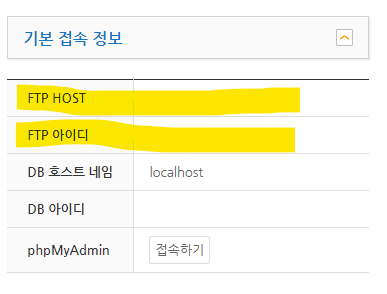 6) 복사 해둘 접속 정보 1 (FTP HOST, FTP아이디)