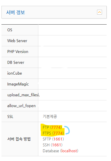 7) 복사 해둘 접속 정보 1 (FTP : 7774)