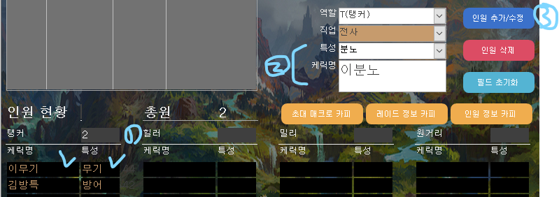 인원 정보 카피는 현재 공격대의 인원정보입니다.