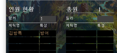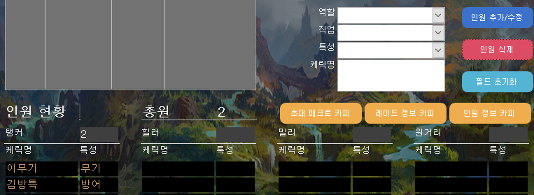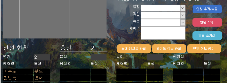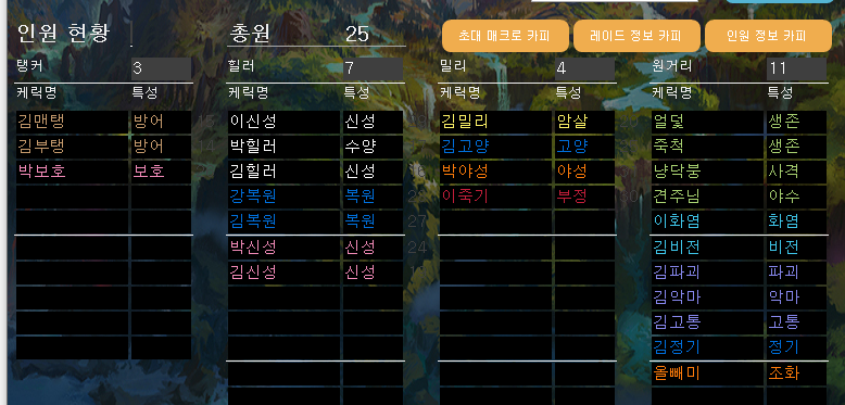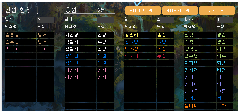 인원 정보 카피는 현재 공격대의 인원정보입니다.