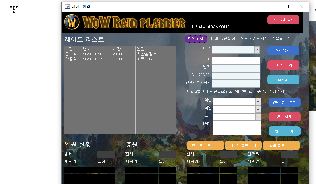 간만에 프로그램 만들면서 와우 레이드 뛰는 기분이 들었네요. 과거 와우저로써 아재가 드릴게 이런것 밖에 없네요. 이전 버전 보다는 빠를거에요. 즐와 하시고...