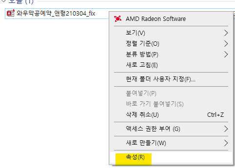 --// 1. 다운 로드 받은 파일 우클릭 후 하단의 속성 클릭