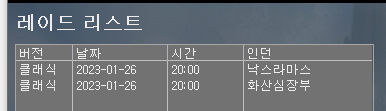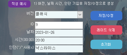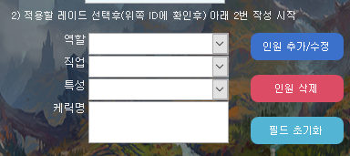 클릭을 하면 우측(#2 레이드 작성부분)에 정보가 불러와 집니다.