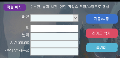 05.29.안녕하세요. 쪽지로 본섭용 만들어 달라는 요청이 많으셔서,본섭용을 만들고 클래식용도 업데이트를 했습니다.조금 달라진 부분은, 인던명을 알아서 입력하는 창이 새로 생겼습니다.첨부