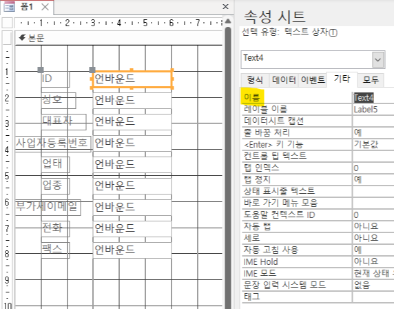 이 폼안에서 이 컨트롤은 현재 text4라는 이름을 가지고 있습니다.